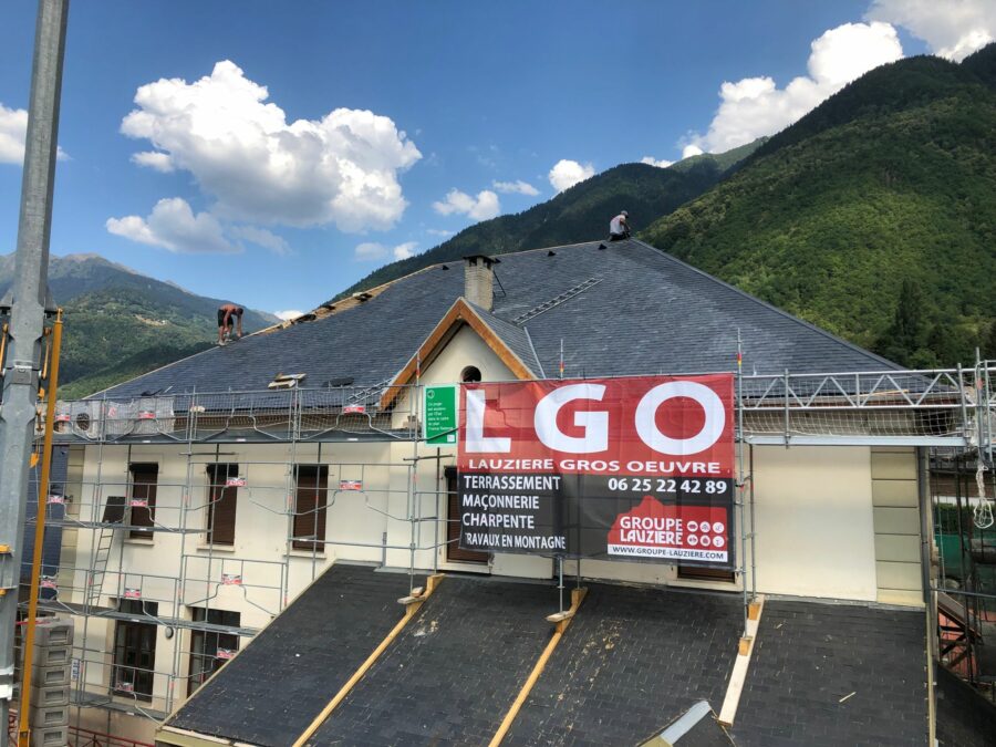 Les équipes LGO encore à pied d’œuvre pour la réalisation de cette superbe villa et sa terrasse panoramique. Maçonnerie, charpente et couverture réalisées par LGO sur Saint-Michel-de-Maurienne.