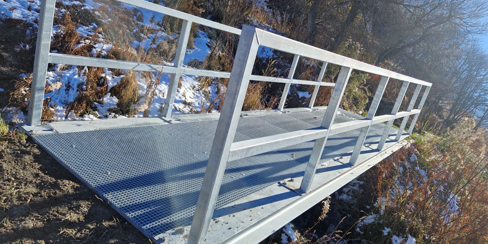Réalisation d’une passerelle surplombant un cours d’eau à Valmeinier par nos équipes de l’atelier Métallerie. Les riverains seront au sec pour passer ce petit ruisseau !
