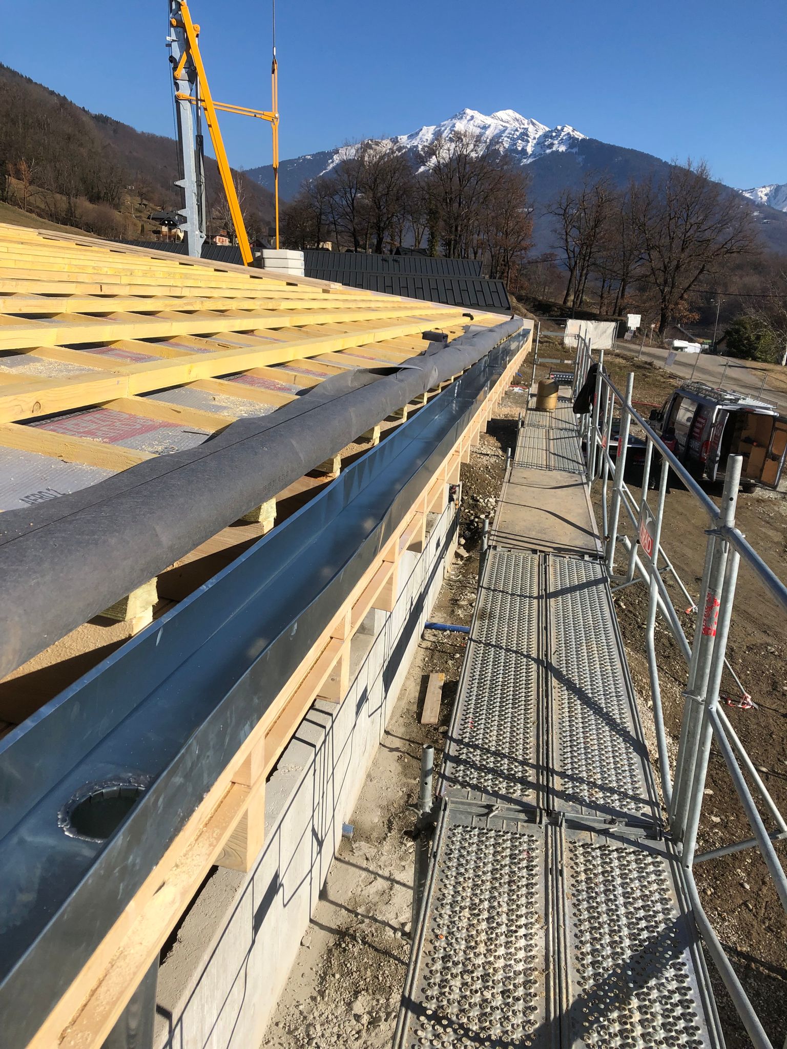 DétailsQuand nos chantiers nous projettent vers le futur… de nos têtes blondes… Chantier de la nouvelle école intercommunale des Hurtières à Saint-Georges-d’Hurtières, au hameau du Reposet, avec une belle charpente toute en longueur taillée par l’Atelier de François et posée par LGO.
