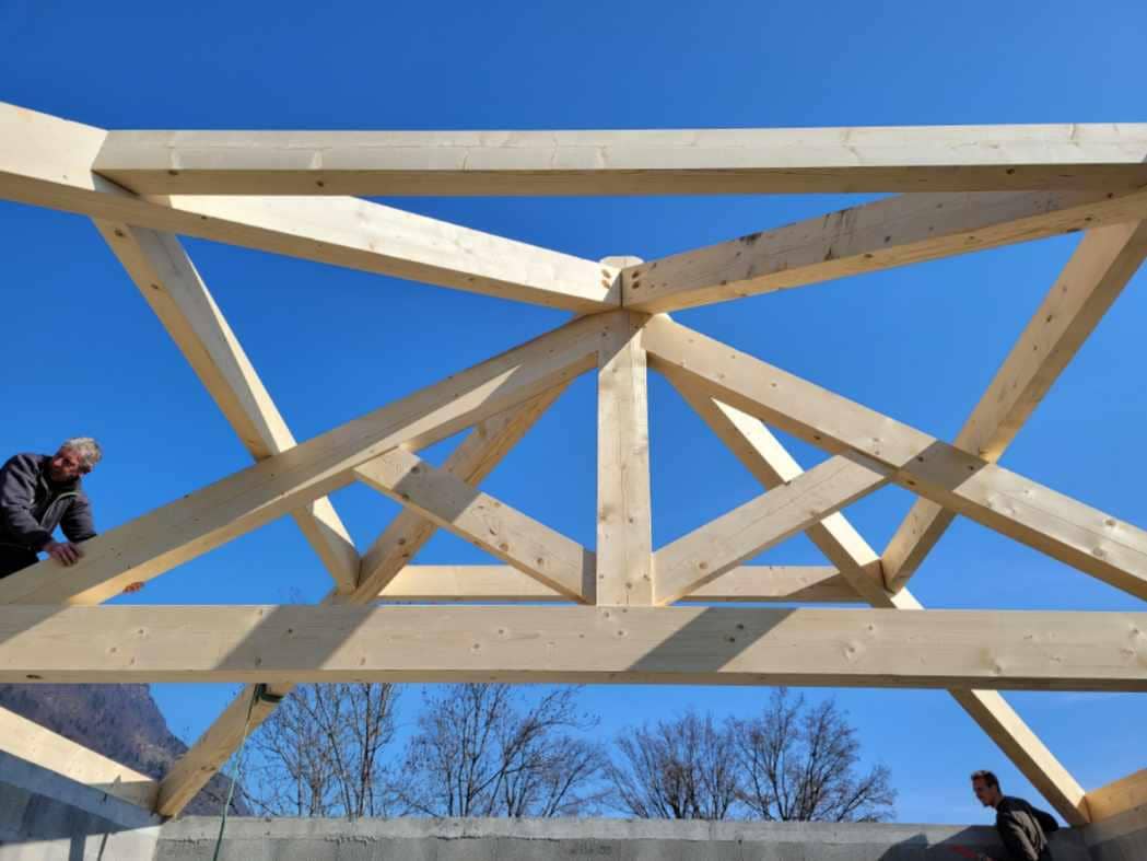 DétailsNouveau chantier pour l’Atelier de François. Fourniture et taille d’une charpente massif en épicéa. Levage par LTL, un beau travail d’équipe !
