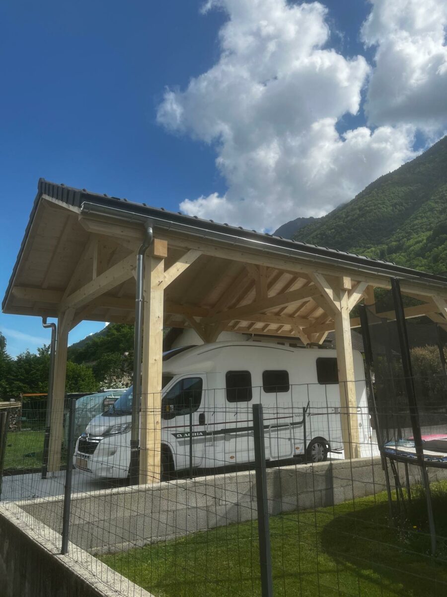 Quand l’été se sera enfin envolé et que votre compagnon de route devra hiverner, rien de mieux qu’un abri de camping-car dédié à votre fidèle véhicule. Une réalisation taillée par l’Atelier de François, posé et couvert par LGO avec la participation de LTL pour le levage des poutres !