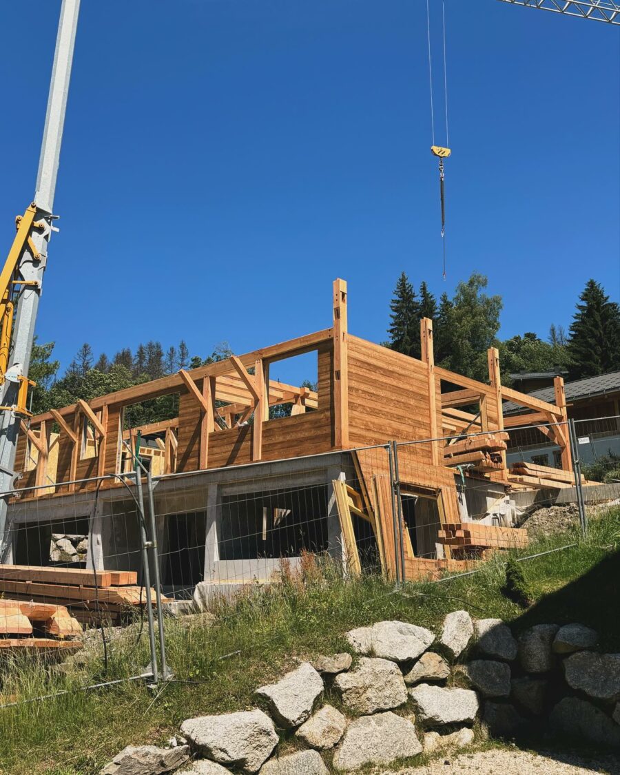 Altipic Maîtrise d’œuvre publie un chalet en cours de construction à Megève. Livraison d’une charpente Atelier de François