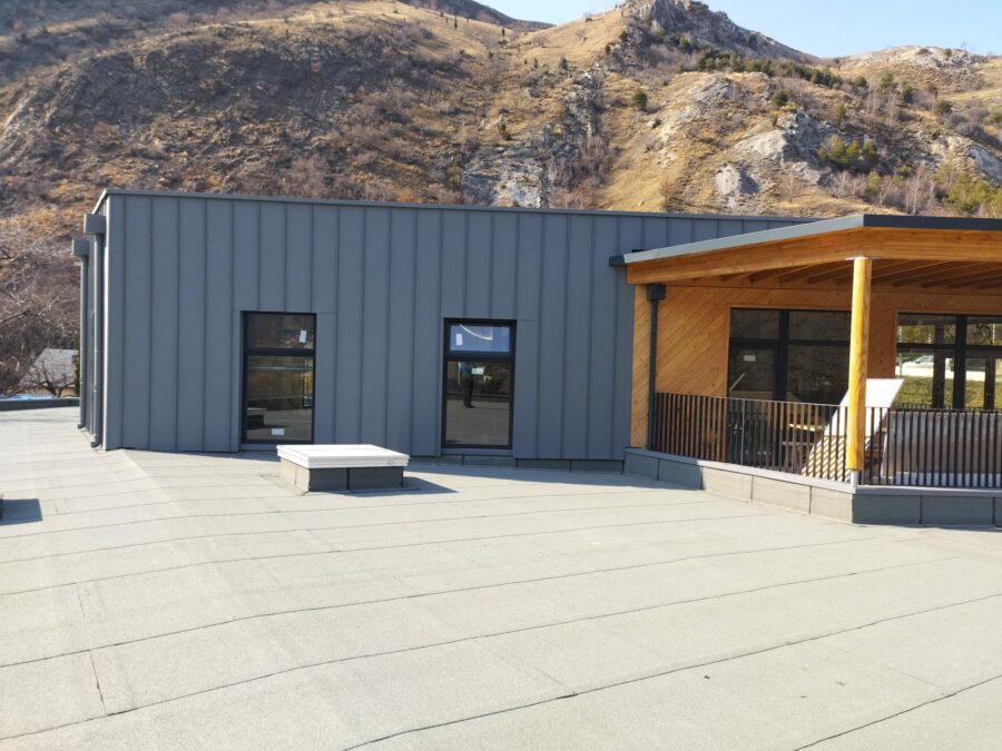 Ce bâtiment fait peau neuve avec u bel habillage des façades en joint debout alu. Un chantier école Bellecombette situé à Saint-Michel-de-Maurienne.